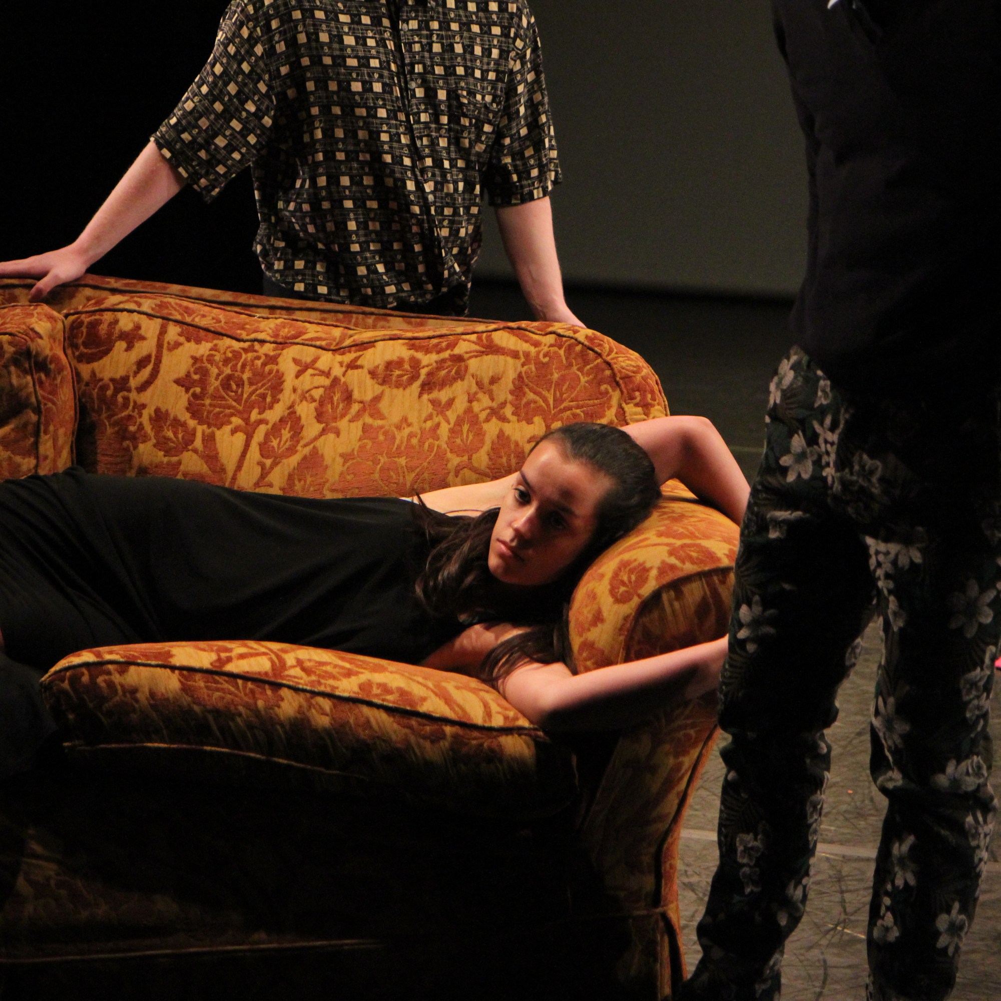 ‘Walking any distance with hot food isn’t going to be convenient’ is a stage performance which questions the agency, status and taste of a group of performers, including both dancers and domestic furniture. Endlessly shifting and fidgeting, chaos and absurdity are presented through constructing, positioning, posing and dancing. The indifferent group deals with their collective and individual dis/organization within the confines of the stage, directly intervening in the technologies of light and sound. Alternately ignoring or appealing to their audience, the work unfolds through futility, spectacle, humour and tedium.